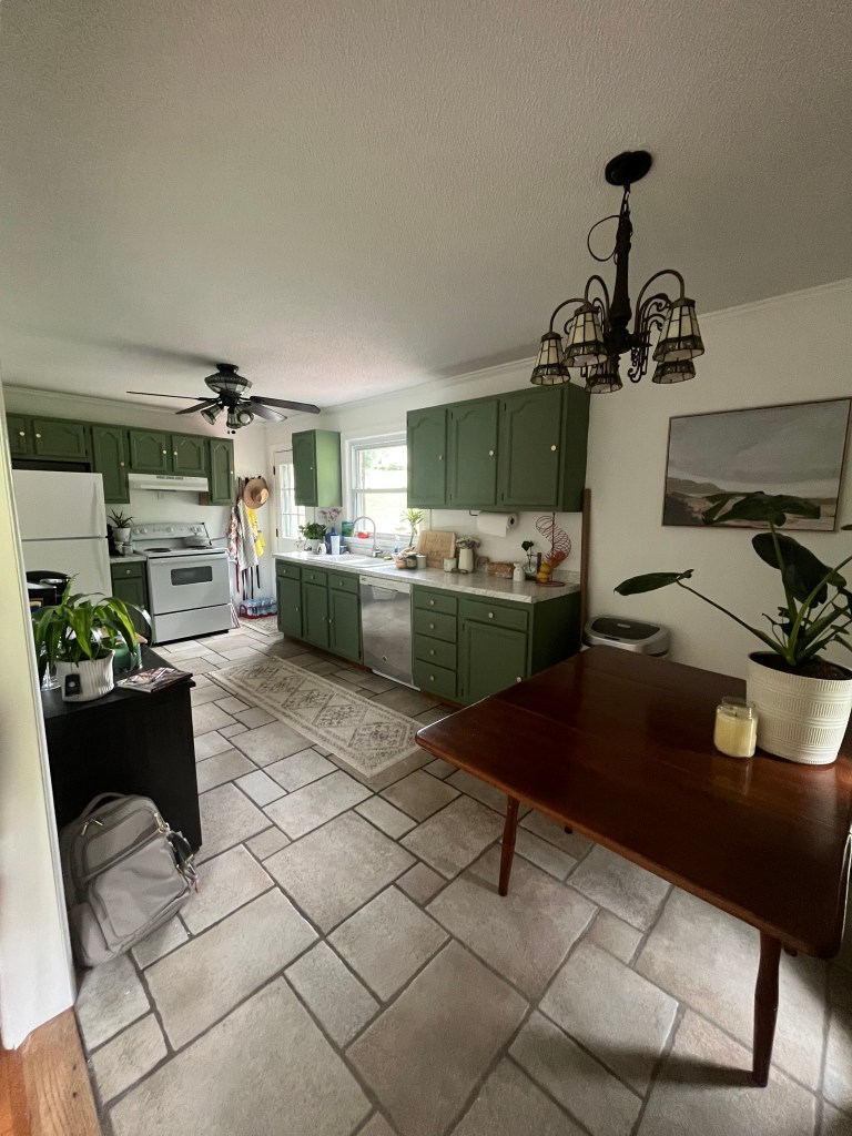 So, really the only thing I could do to “update” the kitchen was buy paint. I decided on white for the walls and green for the cabinets.